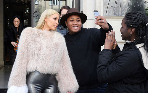 واستقبلت «كيم» بعدد كبير من المعجبين لحظة خروجها والذين حرصوا على التصوير معها.