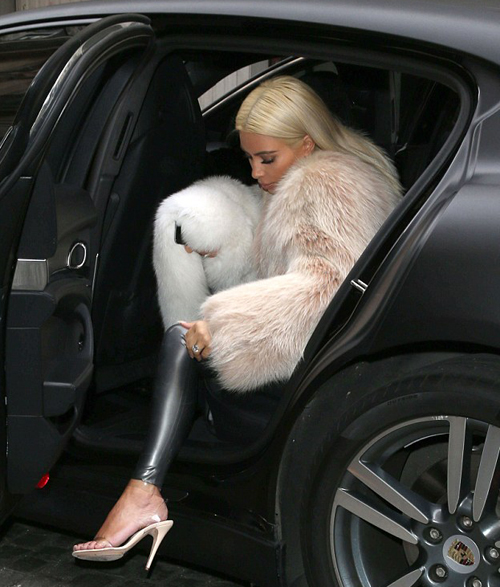 وبدا واضحا خلال الصور توتر «كيم» لحظة خروجها من الصالون، حيث كانت تتحسس شعرها كل فترة، وقد لمته، عكس ما تركته مسدلا على كتفيها لحظة دخولها للصالون.