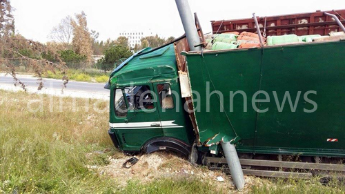 وقال شهود عيان لمدينة نيوز أن الشاحنة إنحرفت عن مسارها وارتطمت بسرعة عالية بعامود كهرباء الضغط العالي على جانب الطريق.