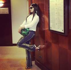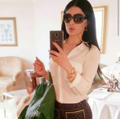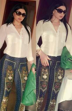 وارتدت في الصور قميصاً أبيض وسروالاً أزرق عليه نقشات كما وضعت حلقاً مستديراً ذهبي اللون وبدت بلوك أنيق وبسيط في الوقت نفسه، كما أسدلت شعرها الأسود المالس على ظهرها وارتدت نظارة شمسية.