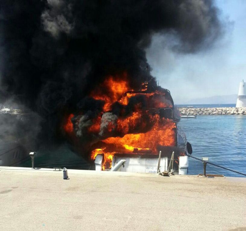 بالصور : القوة البحرية الملكية تخمد حريقاً في نادي اليخوت الملكي