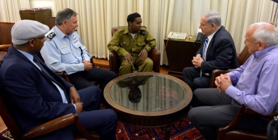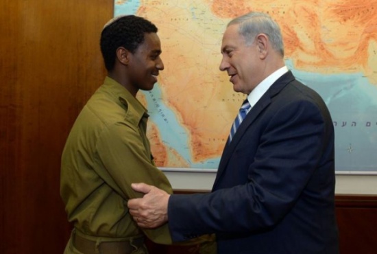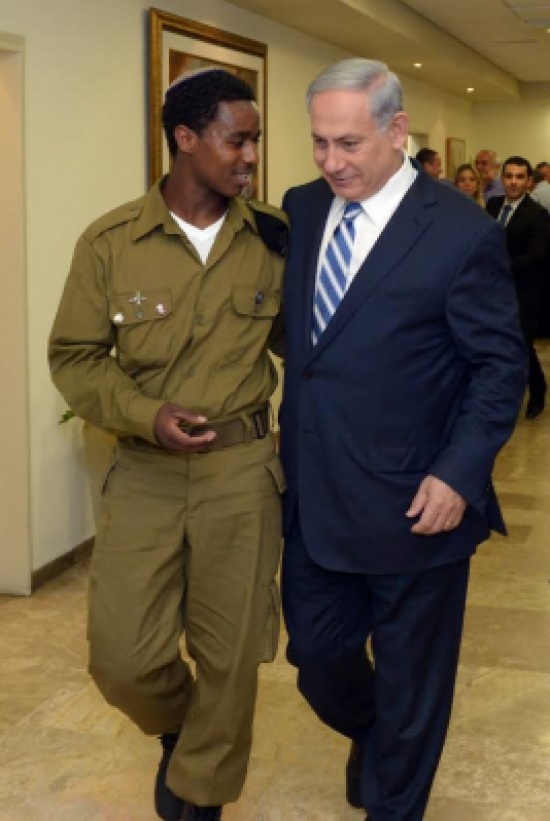 بالصور: نتنياهو يلتقي الجندي الإثيوبي المعتدى عليه من الشرطة
