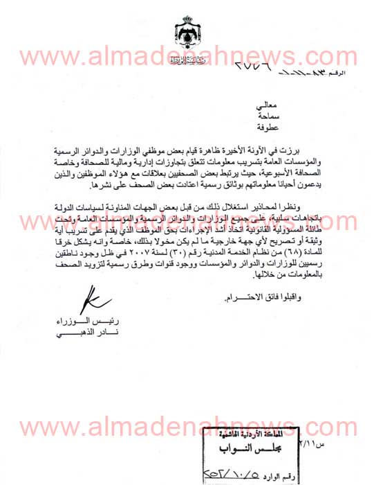 لماذا انقلب الذهبي على نفسه ذات يوم ، وقرر أن يخط كتابا يحذر فيه أصحاب ألقاب المعالي والسماحة والعطوفة " حسب نص الكتاب " من تزويد الصحفيين بأي وثيقة من شأنها أن تكشف سرا ليس من حق الرأي العام الإطلاع عليه حسب اعتقاده ، مما أثار عليه الصحافة ومراكز حقوق الإنسان ومنظمات المجتمع المدني ، هل كان يخشى ان يجيء اليوم الذي " ينكشف " فيه الغطاء عنه وتنشر الصحافة أوراقا وأسرارا وخبايا ، لا ندري ، فقط نعتقد : بأن هذا الكتاب الذي نعيد نشره ، يلخص واقع حال الذهبي ، والخوف الذي اجتاحه من أن تنشر الصحافة وثائق تدينه او تدين مفوضيته أو حكومته - إن وجدت – !! .