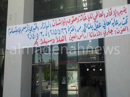 المدينة نيوز - احتفالا بعيد الاستقلال ال 69 و تحت رعاية معالي امين العاصمة عقل بلتاجي نظم الاتحاد العالمي للاغاثة وحقوق الانسان وبالتعاون مع الاعلامية امل خضر بازار خيريا حمل عناون" ارسم ابتسامة "