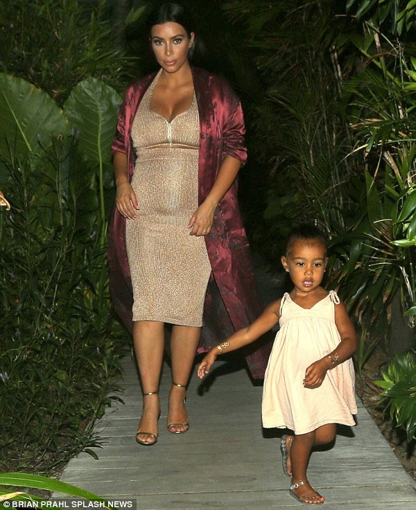 وكانت عدسات كاميرات مصوري الباباراتزي قد التقطت مجموعة من الصور لنجمة تليفزيون الواقع كيم كاردشيان مساء يوم الخميس 20 أغسطس في سانت بارتس، حيث كانت كيم برفقة ابنتها نورث ويست، وقد رصدت الصغيرة وهي تدخل المطعم وحدها من دون أن تمسك والدتها بيدها.