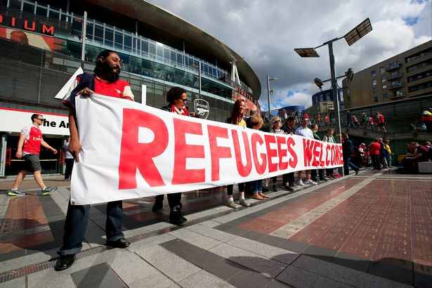 ورفع جماهير ارسنال لافتة كبيرة مكتوب عليها "اللاجئين مرحب بهم" ، حيث قاموا بإكمال ما بدأت به جماهير الملاعب الألمانية الذين قاموا بعمل مثل هذه المبادرات سابقاً .