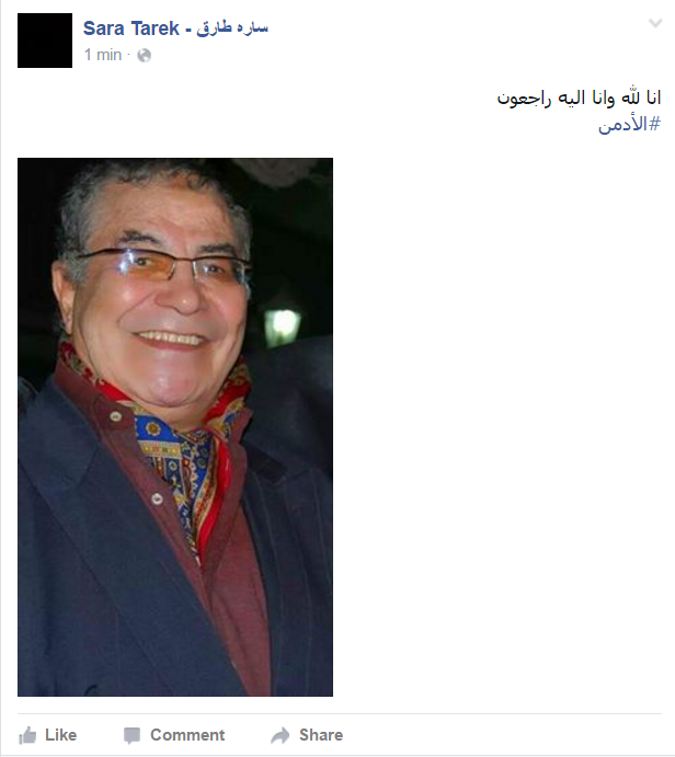 بالصور : أول تعليق لزوجة سعيد طرابيك بعد وفاته: «إنا لله وإنا إليه راجعون»