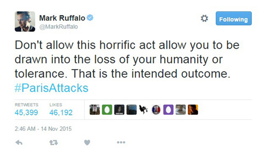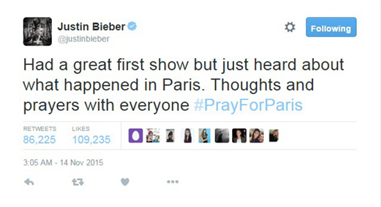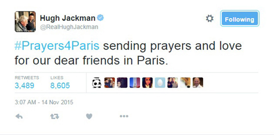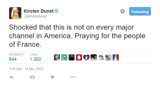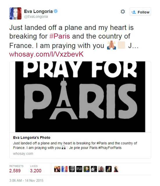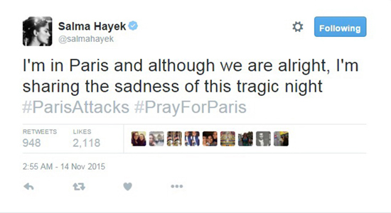 بالصور : تعليق غير متوقع من نجوم هوليود على اعتداءات باريس