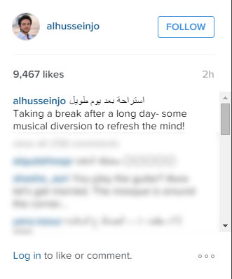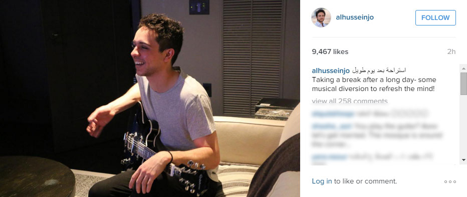 المدينة نيوز -: نشر ولي العهد سمو الامير الحسين بن عبد الله الثاني الثلاثاء ، صورة جديدة له على موقع التواصل الاجتماعي " انستقرام " وهو يعزف على آلة الجيتار .