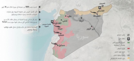 ولفتت إلى أن المئات من العسكريين الروس يشاركون في إدارة المعارك براً بين قوات النظام وقوات المعارضة، في حين يشارك جنود من الوحدات الخاصة الروسية في المعارك ببعض المناطق.