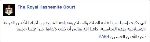 المدينة نيوز :- هنأ جلالة الملك عبدالله الثاني الأمتين العربية والاسلامية بمناسبة ذكرى الاسراء والمعراج .