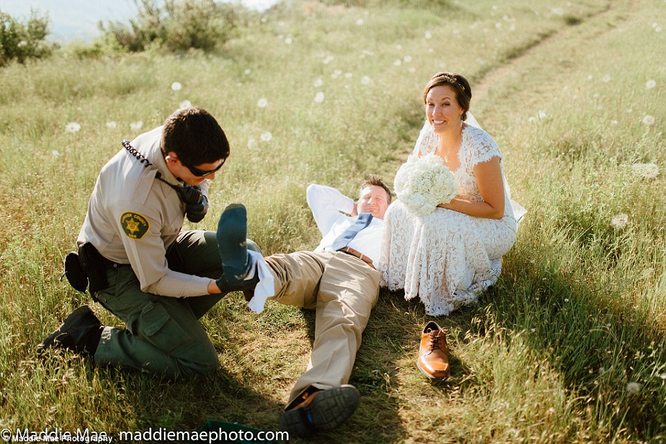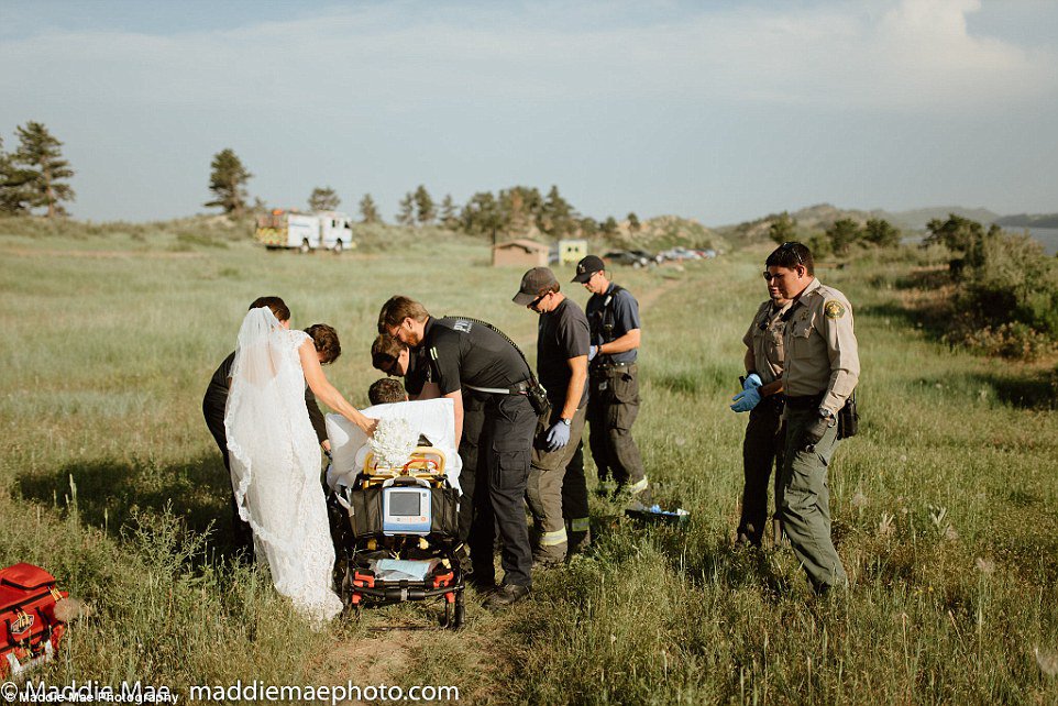 المدينة نيوز :- تعرّض عريس يدعى جوني بنسون لعضة أفعى الجلجلة في كاحله أثناء التقاط صور الزفاف مع عروسه لورا لورتز يوم زفافهما.