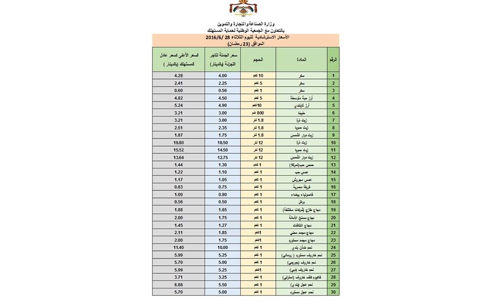 النشرة الاسترشاديه لأسعار يوم الثلاثاء