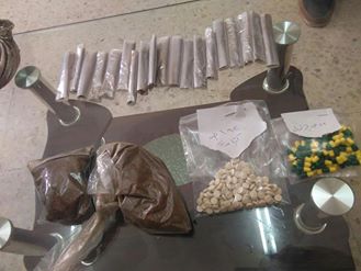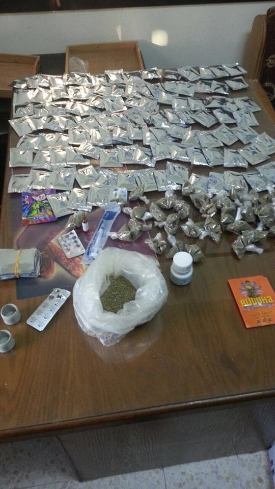 وتمكن العاملون في قسم مكافحة المخدرات في اقليم الشمال من ضبط شخصين في لواء الرمثا وبحوزتهم 3 كغم من مادة الحشيش الصناعي (الجوكر ) اضافة الى 245 كيسا معبأ بنفس المادة ومجهزة للبيع , وفي محافظة الزرقاء نفذت مداهمة لمنزل احد مروجي المواد المخدرة بعد التاكد من حيازته لمواد مخدرة وترويجها وجرى ضبطه وبتفتيش المنزل عثر على ثلاثة اكياس كبيرة تحوي ماده الحشيش الصناعي و 107 اكياس صغيرة معد للبيع وتحوي ذات المادة المخدرة وكمية قليلة من الحبوب المخدرة , هذا والقي القبض في محافظة الكرك على احد المروجين وبحوزته 200 حبة مخدرة من حبوب الترامال المخدر , كما وتمت متابعه معلومة حول نية شخصين نقل كمية من مادة الهيروين المخدر الى محافظة العقبة وتم ايقاف مركبتهما في محافظة الكرك وضبط بدلاتهما على نصف كيلو غرام من مادة الهيروين المخدر وجرى تحويل كافة القضايا والاشخاص المضبوطين لمدعي عام محكمة امن الدولة لاتخاذ الاجراءات القانونية بحقهم.