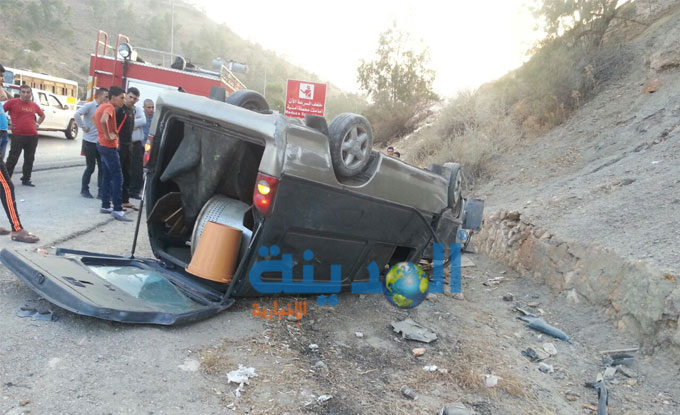 وفاة وثلاث اصابات نتيجة حادث تدهور بجرش (صور)