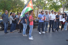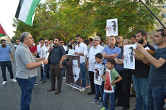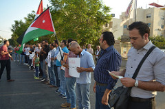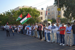 المدينة نيوز :- بدعوة من القوى الشبابية والوطنية الاردنية اقيم مساء الاربعاء أمام مقر الصليب الاحمر الدولي في عمان اعتصام تضامني مع الاسرى الفلسطينين الذين يخوضون معركة الامعاء الخاوية و دعماً للاسير البطل بلال كايد المضرب عن منذ ما يزيد عن خمسين يوما حيث رفع المشاركون شعارات تؤكد على وقوف الشعب الاردني مع الاسرى الفلسطينيين في اضرابهم كما رفعوا صور للاسير الكايد وللقائد احمد سعدات