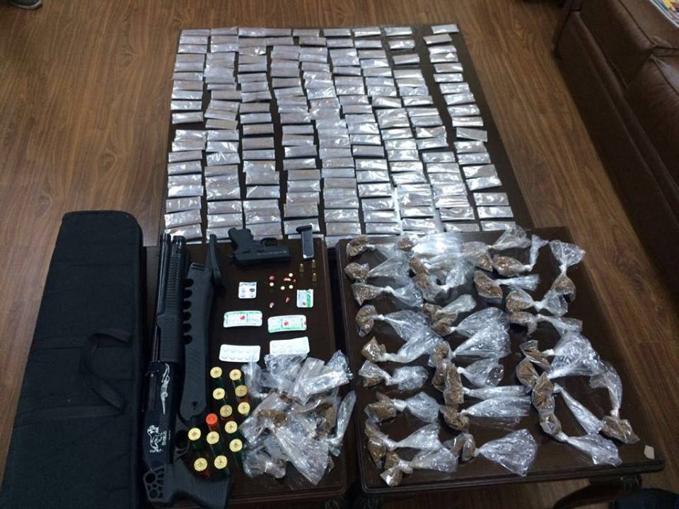 وفي سياق متصل تمكن العاملون في شعبه مكافحة مخدرات العاصمة من استدراج احد الاشخاص من ذوي الاسبقيات الجرمية في قضايا الاتجار وترويج المواد المخدرة والقبض عليه وبحوزته 20 كيس صغير معبأة بمادة الحشيش الصناعي ( الجوكر) , حيث توجه حال القبض عليه فريق خاص لمنزل ذلك المشبوه لتفتيشه ليعثروا بداخله ايضا على 250 كيس معبأة بمادة الحشيش الصناعي وكمية من الحبوب المخدرة المختلفة اضافة الى سلاح ناري وكمية من العتاد الحي وما زال التحقيق جار معه .