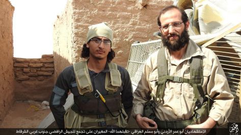 الممدينة نيوز :- بث تنظيم داعش الارهابي مؤخراً شريط فيديو ظهر فيه ما قال انه شخص أردني قام بتفجير نفسه في العراق ويظهر التسجيل شخصين احدهما عراقي والاخر اردني نفذا عمليات ارهابية ضد الجيش العراقي في مدينة الشرقاط غربي الحويجة .