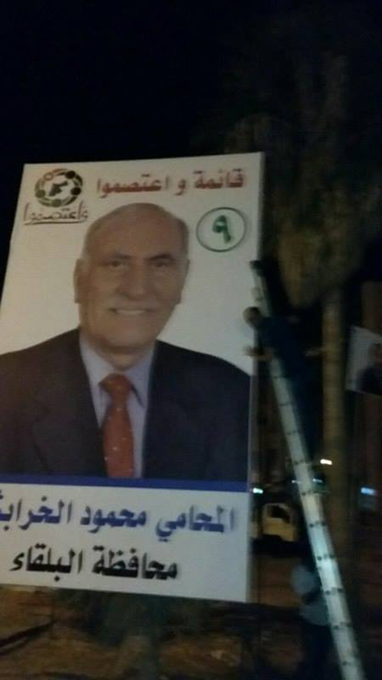 وكان الالاف من المناصرين أموا المقر الانتخابي ، حيث كان على رأس استقبالهم الخرابشة ، واعضاء قائمة واعتصموا ، وسط مؤازرة كبيرة من أنصار الخرابشة الذين شاهدوا من خلال شاشة كبيرة انجازات الخرابشة الكثيرة والمتعددة في حين توسط المقر مجسم كبير للشهادة التي حصل عليها الخرابشة من خلال جائزة قدمتها له جامعة الدول العربية ، حيث تم اختياره كأفضل نائب على مستوى الوطن العربي .