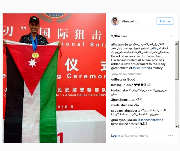 وكتب الاكير الحسين على حسابه في "انستجرام" : " الملازم إبراهيم العجرمي بطل من أبطال أردننا في الميادين الدولية، وصاحب إنجاز كبير يضاف إلى منجزات نشامى القوات المسلحة، فخورون بك ".