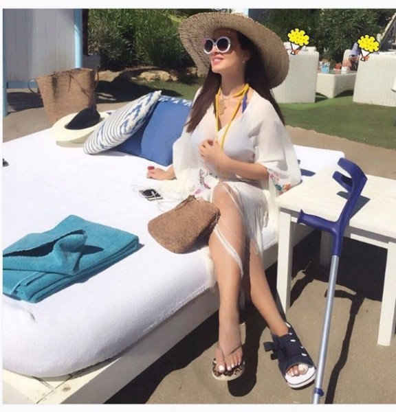 بالصور: ميساء مغربي بملابس البحرعلى الشاطئ رغم إصابتها