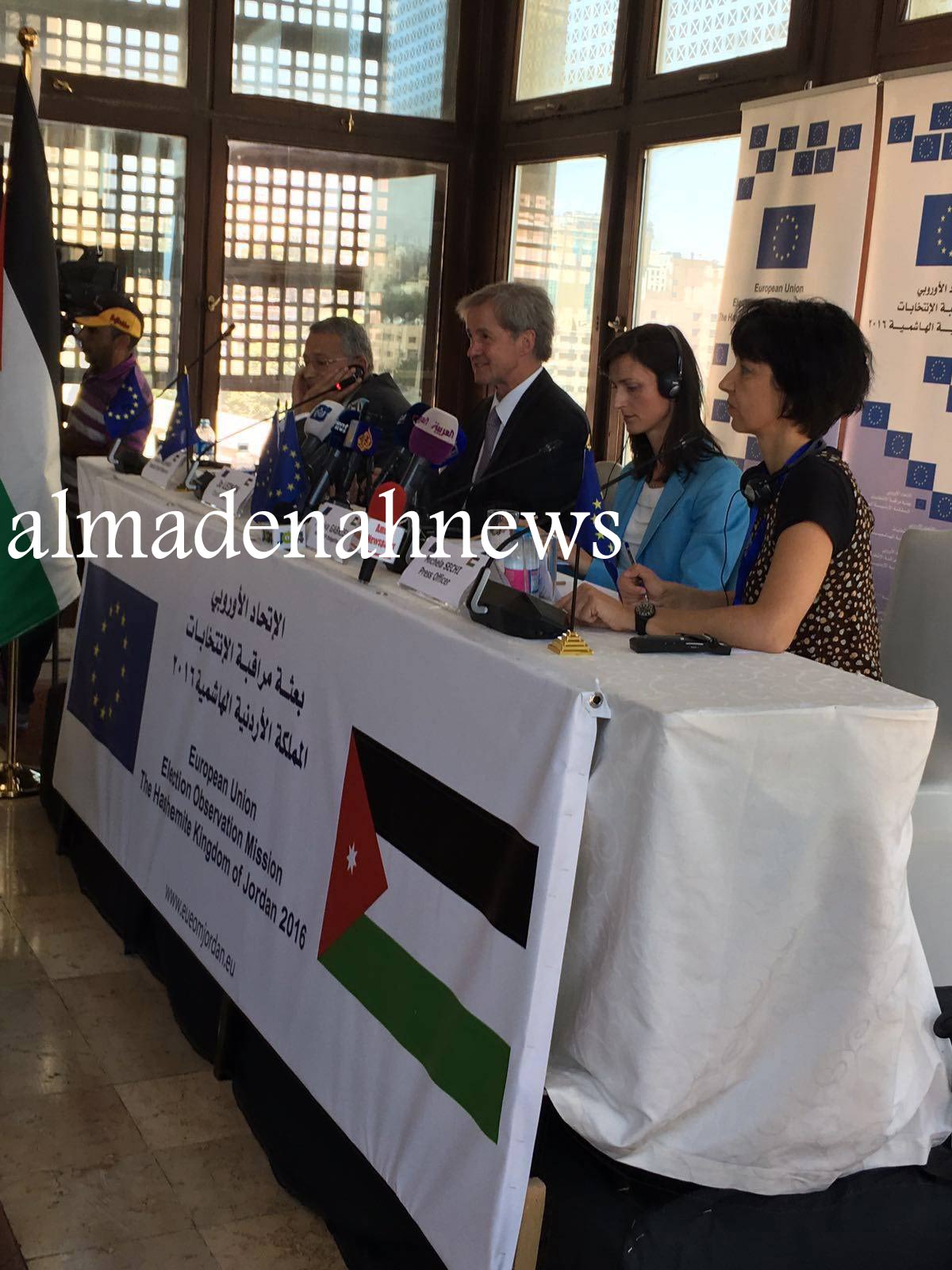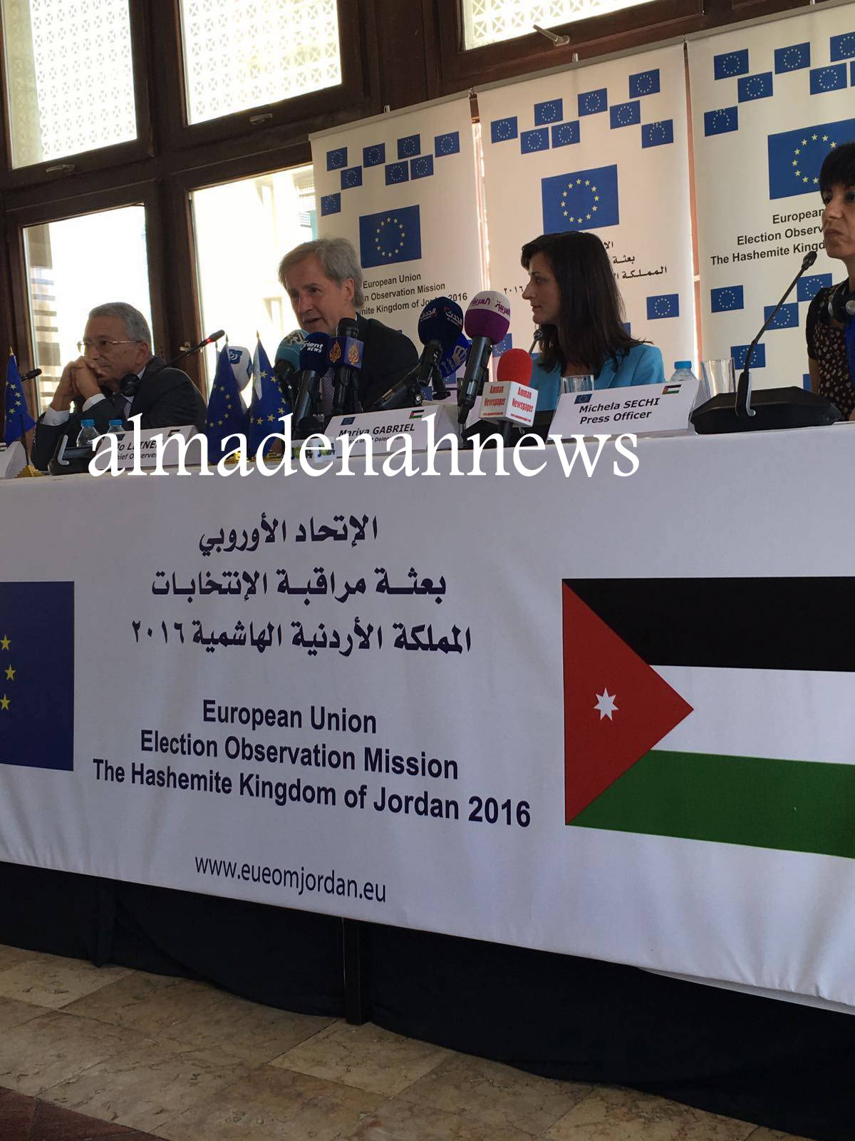 وقال بيان أصدرته البعثة الأوروربية لمراقبة الإنتخابات في الاردن : إن عملية تسجيل الناخبين تمت بشكل جيد وشامل عن طريق الهيئة المستقلة ، ولكن هناك شروط غير مرنة ، وإن الحملات الإنتخابية كانت انسيابية ومرت بسلام عدا بعض الحوادث غير الكبيرة .