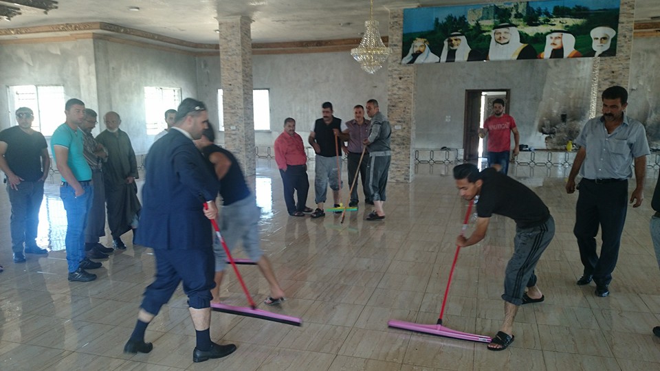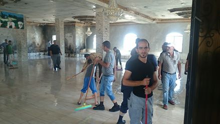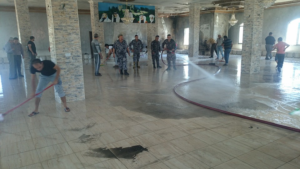 وقال شهود عيان : ان مجموعة من الشبان قاموا بازالة مخلفات الحريق وتنظيف الديوان تمهيداً لاجراء الاصلاحات اللازمة .