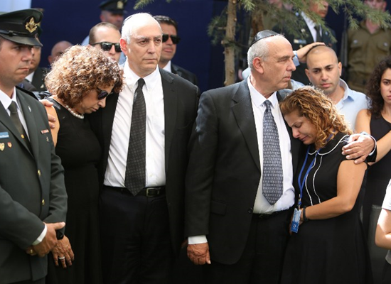 حيث صافح محمود عباس رئيس الوزراء الإسرائيلي، بنيامين نتنياهو الجمعة خلال الجنازة في القدس .