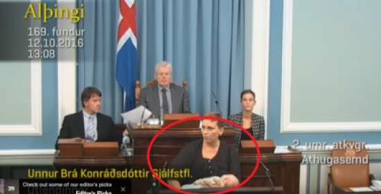 أظهر الفيديو الذي بثته قناة “غلوبال نيوز” على اليوتيوب البرلمانية “أونور برا كورنادسدوتير”، وهي عضوة منذ عام 2009، أثناء قيامها بإرضاع طفلتها التي رأت النور منذ أسابيع قليلة.