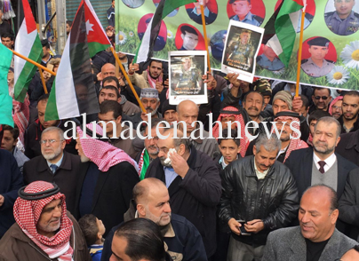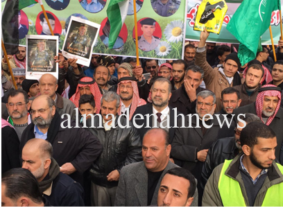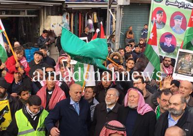 و رفعت في المسيرة صور الشهداء و الاعلام الاردنية و شعارات الولاء والانتماء للشعب والاردن وقائد الاردن في وحدة وطنية جامعة عكست حقيقة الاردنيين من شتى اصولهم ومنابتهم.