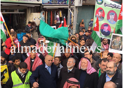 وشوهد في المسيرة قيادات اسلامية ونقابيه ومجتمعية هتفوا نفس الهتافات التي تؤكد على أن الشعب الأردني ملتف حول وحدته و قيادته و اجهزتة الامنية وقواته المسلحة مستعدا للتضيحه في سبيل بقاء الاردن قلعة حصينه في وجه مصاصي الدماء الجدد من اعداء الانسانية.