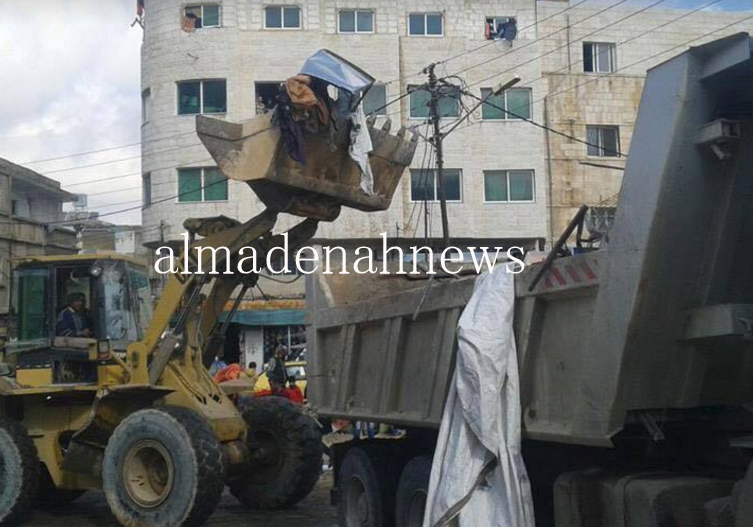 المدينة نيوز :- خاص : نفذت بلدية اربد الكبرى صباح الخميس ,بالتعاون مع مديرية شرطة اربد حملة لازالت العوائق التي تم إعادتها من قبل التجار و اصحاب البسطات في مجمع بيت راس وسط مدينة اربد.