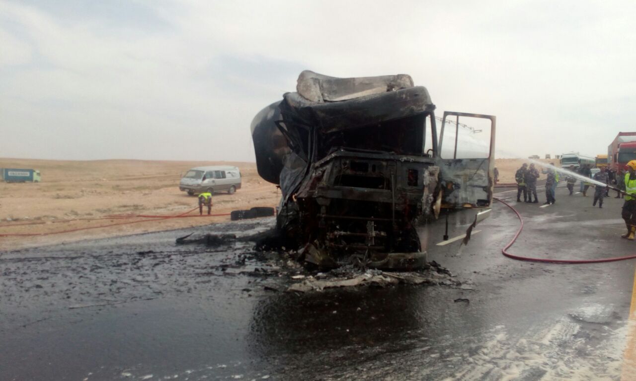 بالصور .. حريق في صهريج محروقات على ' الطريق الصحراوي'