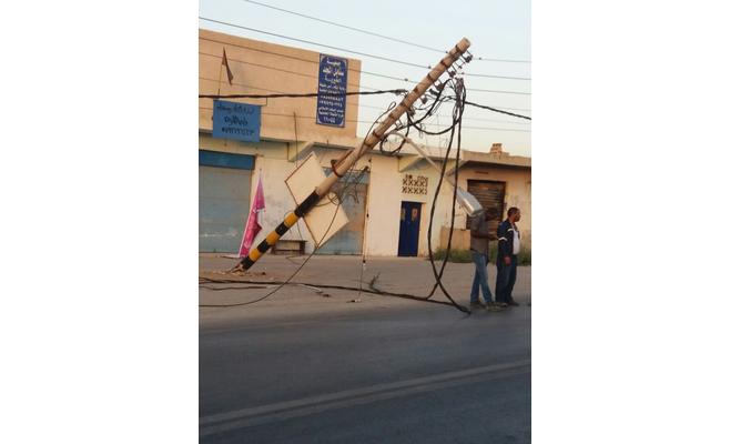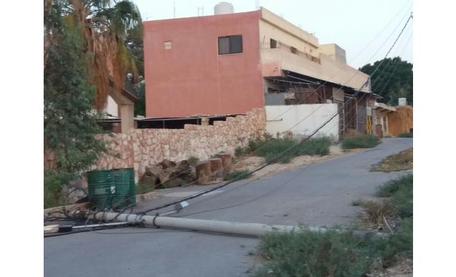 بالصور : سقوط 4 أعمدة في الشونة الجنوبية وانقطاع التيار الكهربائي