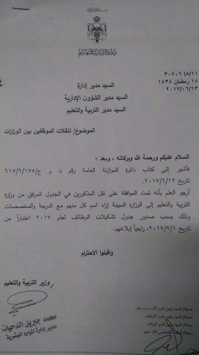 المدينة نيوز :- قررت وزارة التربية والتعليم الموافقة على نقل 95 موظفاً من الوزارة إلى وزارات مختلفة .