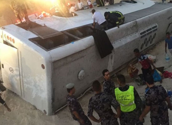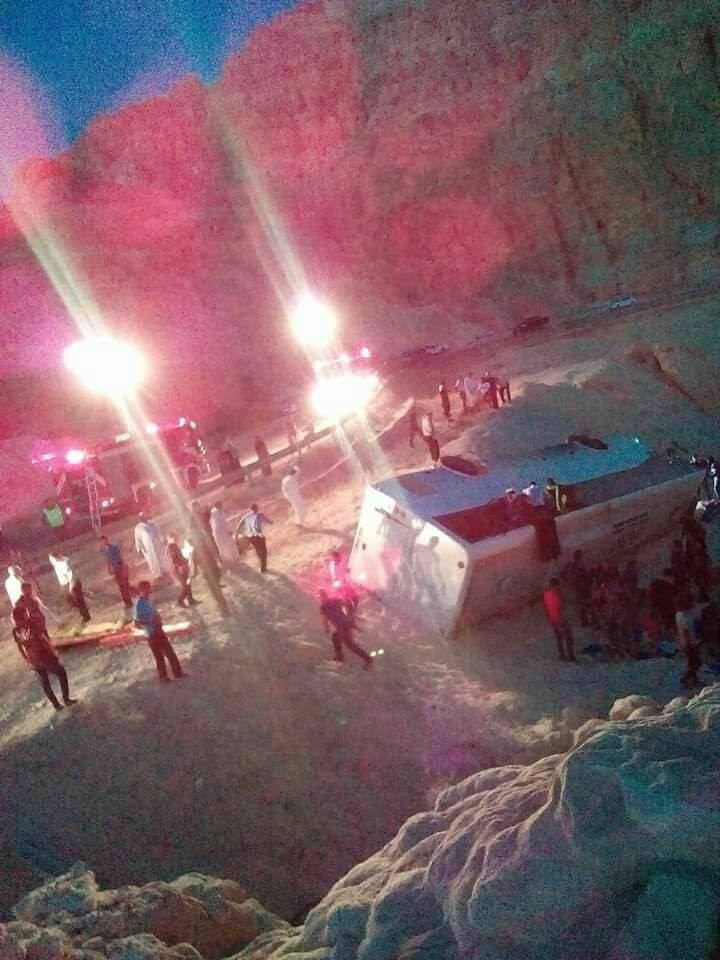 بالصور.. وفاة ٦ أشخاص وأصابه ٣٨ شخص أثر حادث تدهور حافلة معتمرين في الطفيلة