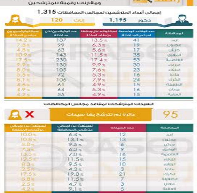 "راصد": 1315 مترشحاً لمجالس المحافظات منهم 120 سيدة - انفوجرافيك