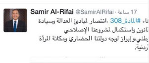ماذا غرد سمير الرفاعي عن قرار النواب شطب المادة 308