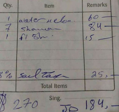 وعند طلب الزوار فاتورة تفصيلية وتحمل رقم ضريبي رفض القائمين على المطعم منحهم طلبهم مما اضطرهم دفع مبلغ 184 دينار منها 60 دينار ثمن بطيخه مما دفعهم الى اتهام المطعم بسرقتهم وتداولو صورة الفاتورة عبر مواقع التواصل الاجتماعي مما اعطى صورة سلبية عن المطعم وعن السياحة في الاردن.