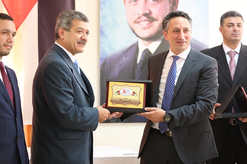 وفي النهاية قام عطوفة هاني الخليفات بتكريم سعادة ابو رمان ومنحه درع مؤسسة التدريب المهني وتم التقاط الصور التذكاريه للخريجين و راعي الحفل ابو رمان .