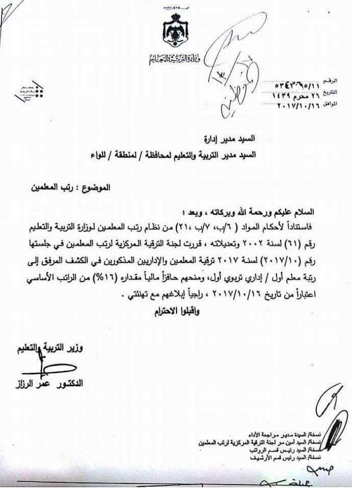 بالاسماء : حوافز مالية وترفيعات لـ " 480 " اداراياً ومعلماً في التربية