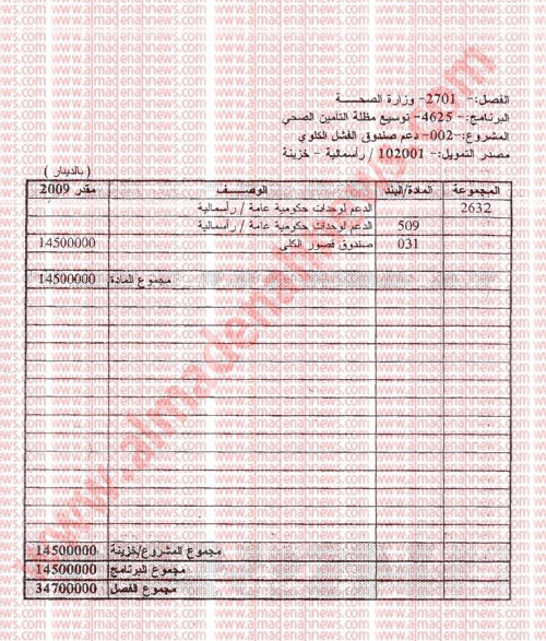 المدينة نيوز – خاص وحصري – وثائق - : حصلت مصادرنا على وثيقة تبين حجم الدعم الحكومي لصندوق الكلى ..