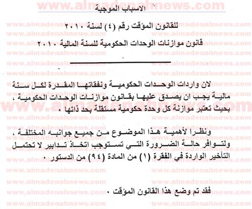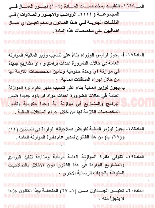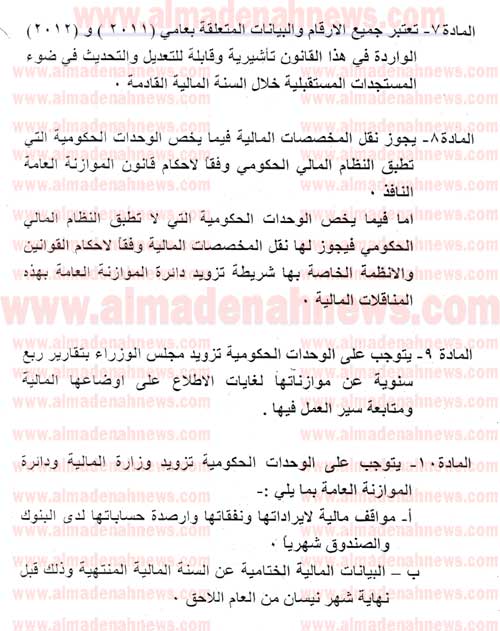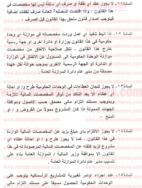المدينة نيوز – خاص – من المتوقع أن تحدث مناقشة هذا القانون الذي ننشره لكم للإطلاع عاصفة برلمانية إن صدق ( حدس ) الرهان على البرلمان ، ولم يمر بسلام ، لأنه لو مر هذا القانون بسلام ، فالسلام على البرلمان ، خاصة وأنه يعنى بنفقات الوحدات الحكومية ، يعني كل مصاريف البلد ..