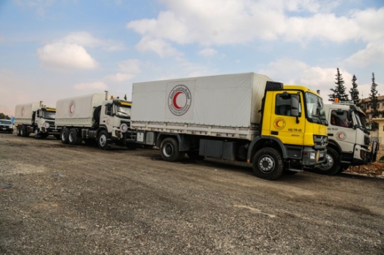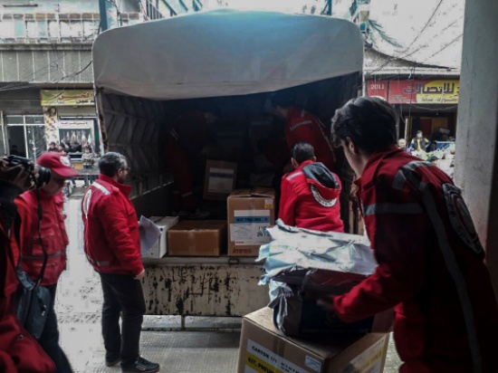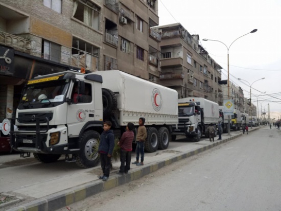 قافلة المساعدات تدخل الغوطة (الصليب الأحمر السوري )