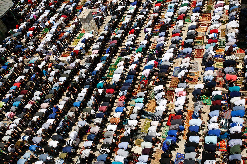 وتوافد عشرات الآلاف من المصلين إلى ساحات المسجد الأقصى من كافة محافظات الضفة الغربية بعد تخفيف القيود المفروضة على دخولهم المدينة المقدسة.