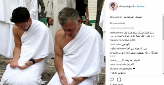 المدينة نيوز :- نشر الامير حسين ، ليلة الاحد الاثنين صورة تجمعه مع الملك عبدالله الثاني خلال اداء مناسك العمره .