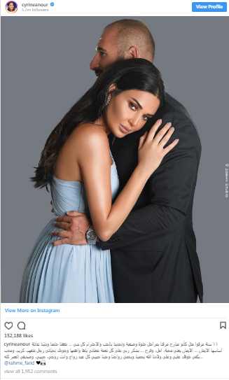 وأضافت سيرين عبد النور: “بشكر ربي على كل نعمة عطاني ياها وأهمها وجودك بحياتي رجل متفهم، كريم، ومحب، بكفي خوفك عليي وعلى ولادنا الله يحمينا ويحمي زواجنا وحبنا حبيبي كل عيد زواج وأنت زوجي، حبيبي، وصديقي العمر كله” فوشيا
