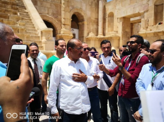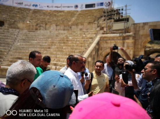 المدينة نيوز:- تحت رعاية الملك عبدالله الثاني ابن الحسين المعظم تنطلق يوم الخميس المقبل التاسع عشر من تموز الحالي فعاليات مهرجان جرش للثقافة والفنون في دورته الثالثة والثلاثين، حيث نظمت ادارة المهرجان جولة ميدانية لوسائل الاعلام المختلفة على مواقع فعاليات المهرجان في مدينة جرش الاثرية ( المسرحين الشمالي والجنوبي والساحة الرئيسة،شارع الاعمدة) بهدف اطلاعهم على التحضيرات والتجهيزات لاطلاق فعاليات المهرجان التي ستلتئم في مدينة جرش الأثرية خلال الفترة 19-28 تموز الجاري، ومن 29 تموز الجاري – 4 آب القادم في مدينة عمان.