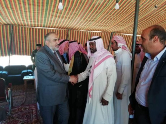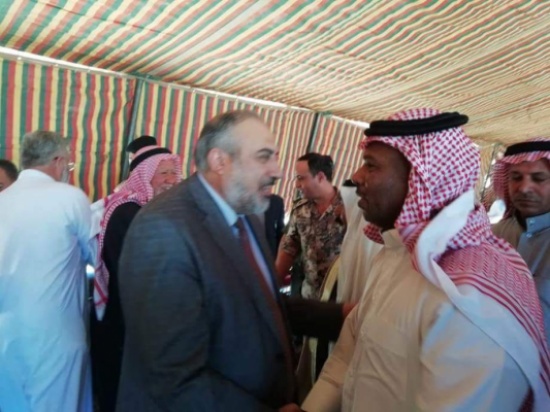 وخاطب عشائر الحويطات قائلا: "شهيدكم وشهيدنا كان مقداماً وأعاد الصورة التي عرفناها في هدي محمد صلى الله عليه وسلم الذين كان يقتدم الصفوف كلما سمع هيعة طار إليها"، كما وجه التحية للعيون الساهرة من أبناء القوات المسلحة ، مضيفاً "هذا الوطن عزيز وكبير يفتدى بأعز ما نملك وهذا الوطن يستهدف من أعداء في الداخل والخارج"، مستدركًا بالقول: "لكن هذه الدماء الزكية الطاهرة عززت اللحمة فيما بيينا وعززت الوحدة الوطنية وجعلتنا صفاً واحدا في وجه كل أعداء الوطن وفي مقدمتهم الإرهابيون الذين امتهنوا القتل والإجرام".