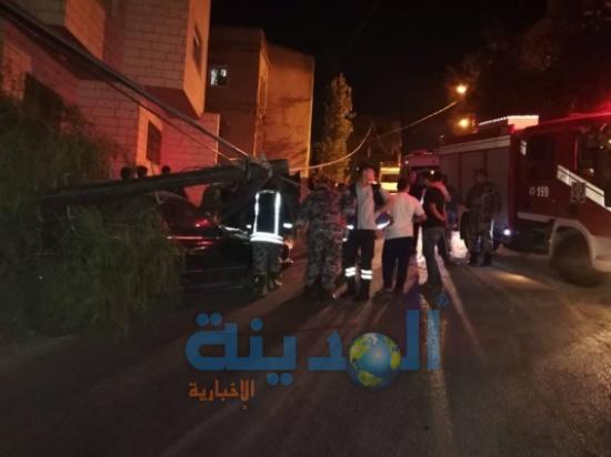 وقال مصدر : ان كوادر دفاع مدني جرش تعامل مع حادث تدهور سيارة BMW تحررت من كوابحها اثناء قيام مالكها بعمل صيانة لها بجبل العتمات و استقرت بعد اصطدامها بعمود كهرباء .